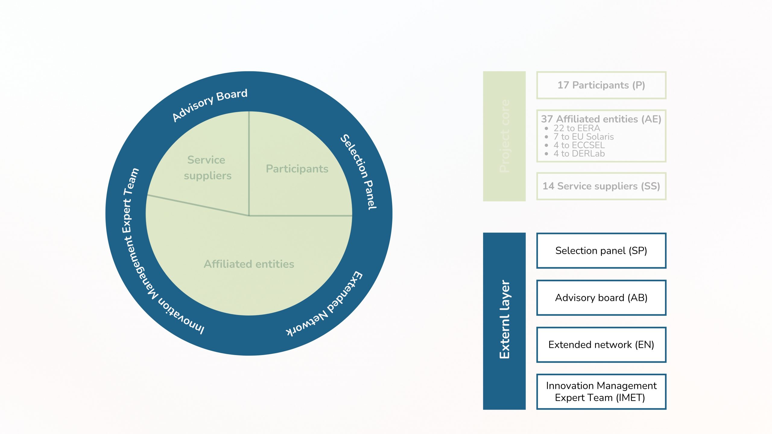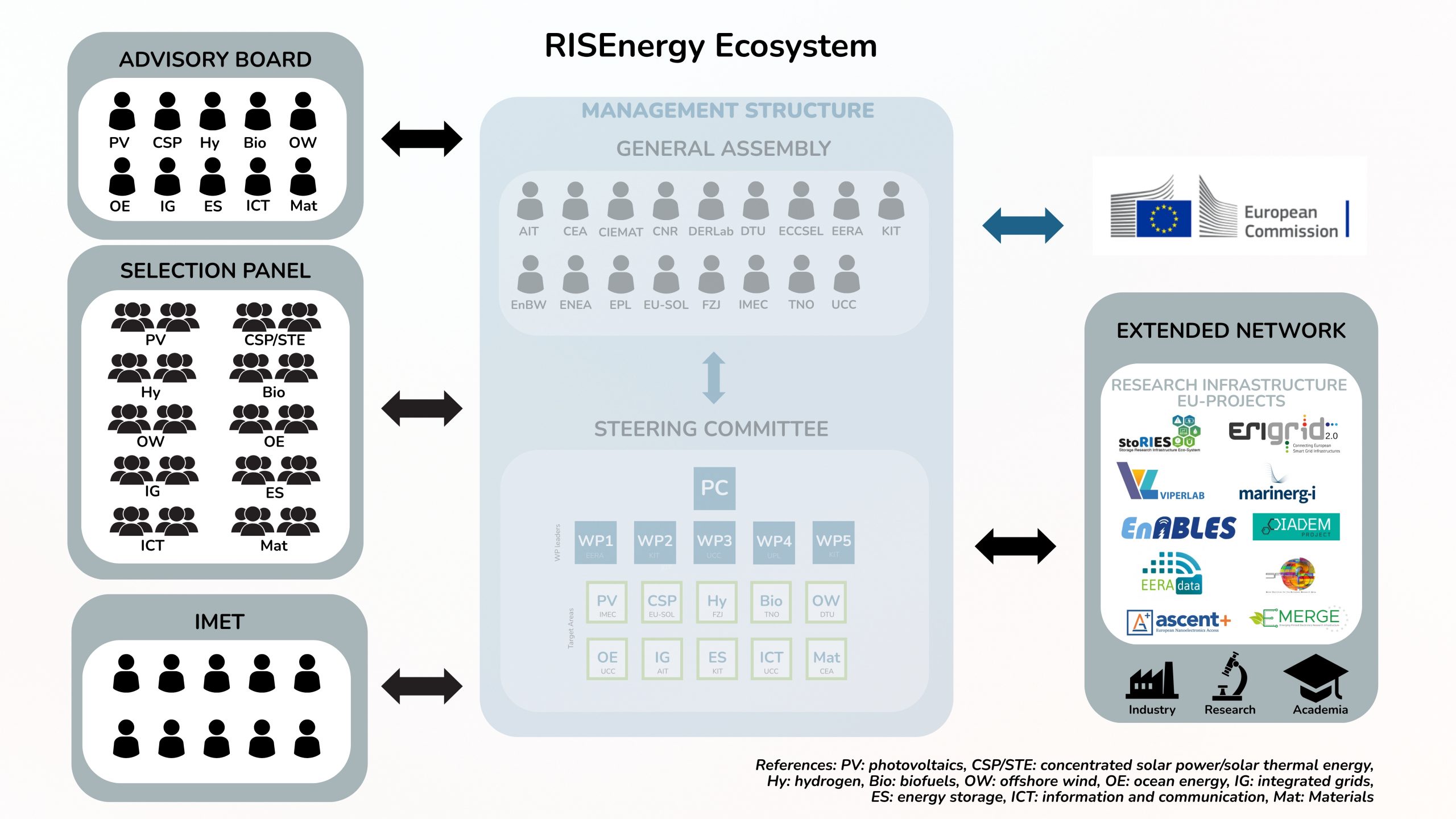 The project’s external layer consists of experts and stakeholder entities from academia and industry. This layer is an essential component of the project ecosystem, supporting the implementation of RISEnergy by providing advice and relevant know-how to address the project’s needs.