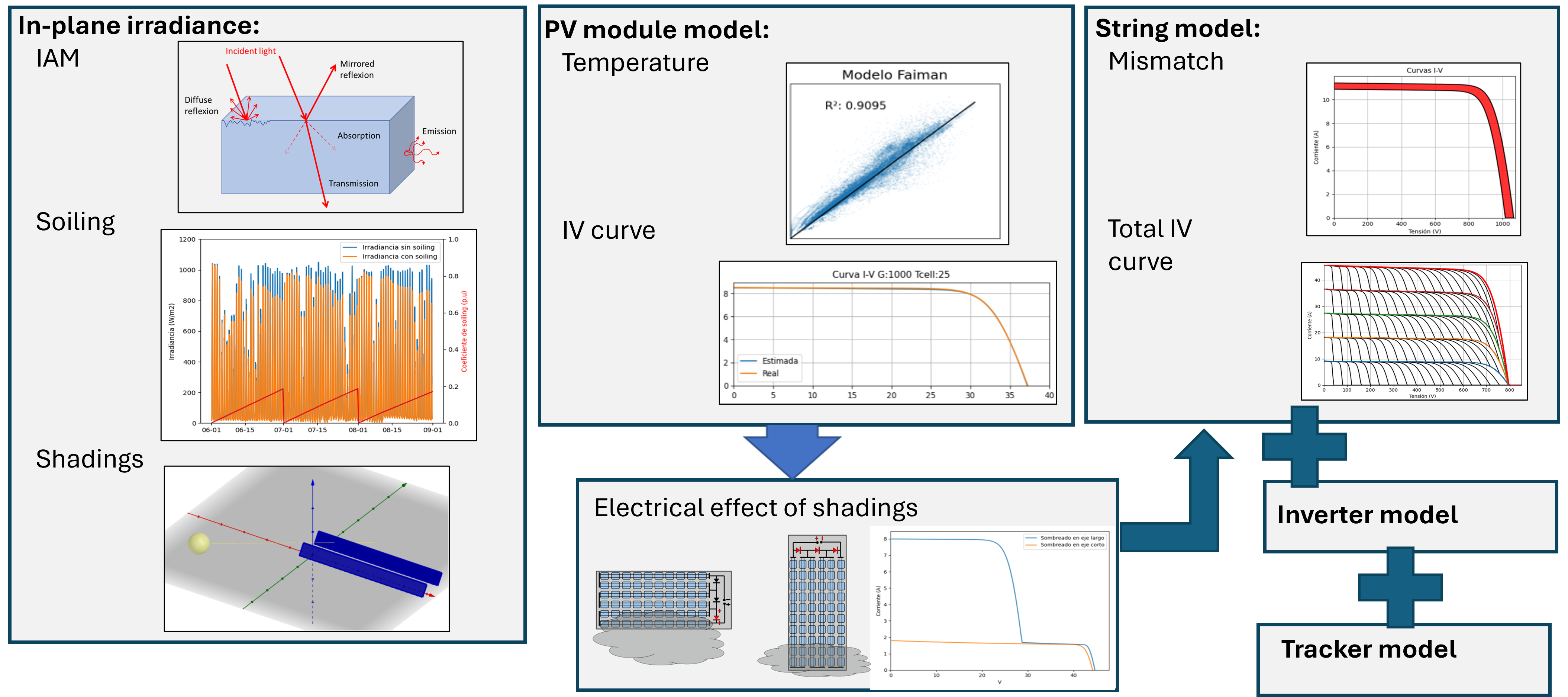This infrastructure includes a set of software codes for detailed analysis of the performance of the photovoltaic (PV) systems without restrictions on their configuration or composition, taking into account the specific characteristic of the location of interest.