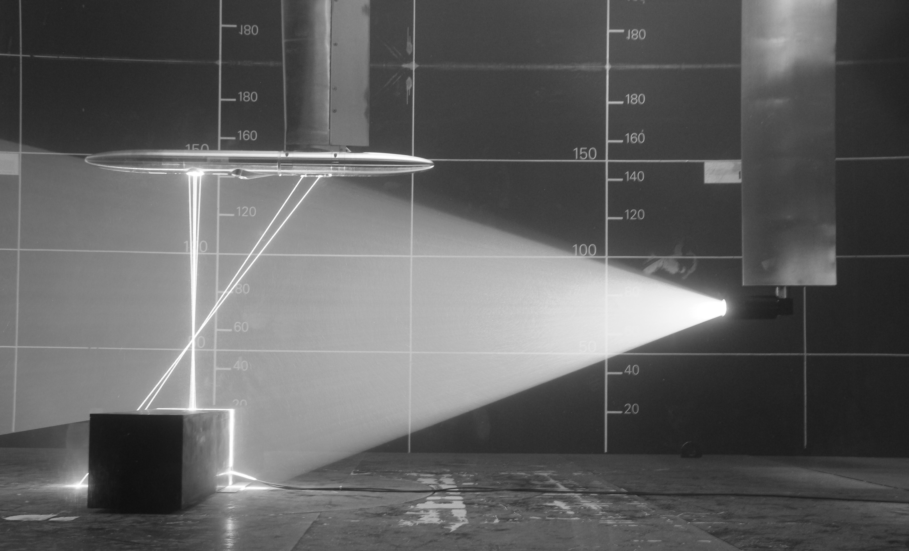 The Boulogne-sur-Mer flume tank is equipped with whole and performance measurement facilities specific to hydrodynamics. In particular it provides measurements of main mechanical stresses on testing devices and allows for the study and visualisation of the water flow and the dynamical behaviour of the models :
